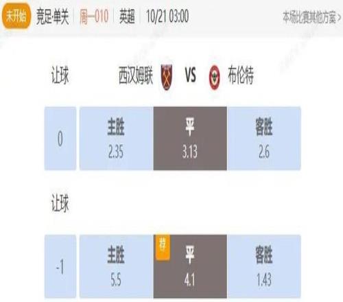 竞足 周一010 英超 西汉姆联VS布伦特