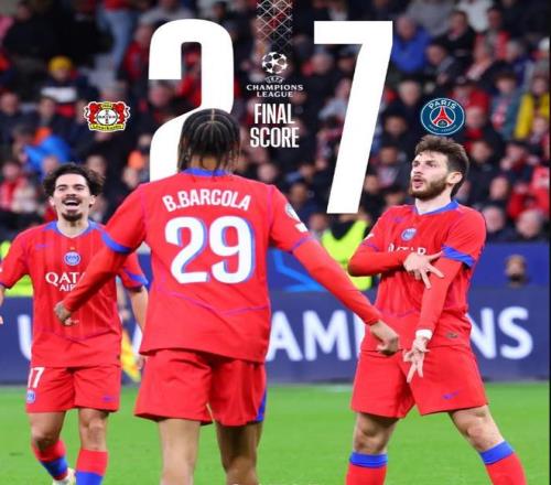 雷速体育10月22日宣 北京时间今天凌晨,欧冠联赛阶段第三轮,巴黎圣日耳曼客场7-2大胜勒沃库森。