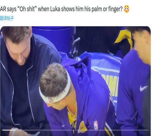 东契奇因为左手手指扭伤和小腿挫伤缺席本场比赛,在替补席上东契奇给里夫斯展示他受伤的手指。
