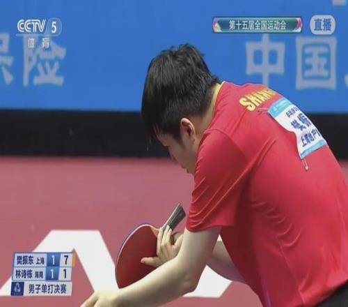 比赛开始,双方就陷入胶着,林诗栋8-4率先拉开比分,樊振东随后连续追分,11-9先胜首局。