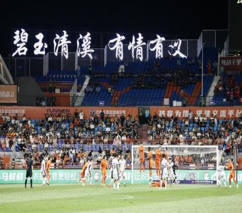 云南玉昆2:0战胜梅州客家,捍卫橙色荣耀,斩获中超三连胜。(沈阳 摄)
